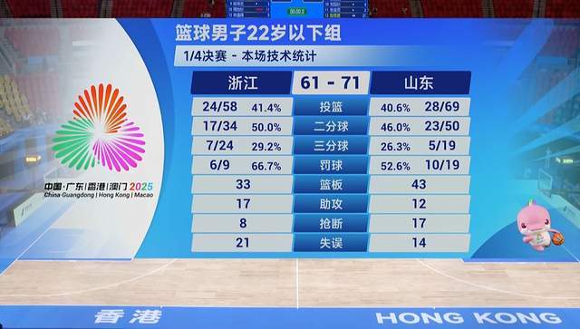 北京时间11月17日,第十五届全运会U22男篮四分之一决赛火热进行中,山东U22男篮与浙江队争夺一个4强席位。经过4节较量,山东U22男篮以71-61击败浙江队,顺利打进4强,巩晓彬距离金牌又近了一步。不过,在第四节,山东队单节输了15分之多,实属不应该,巩晓彬需要给队员们上紧发条才行。段昂君21分5篮板5助攻,陈家政11分3篮板。
