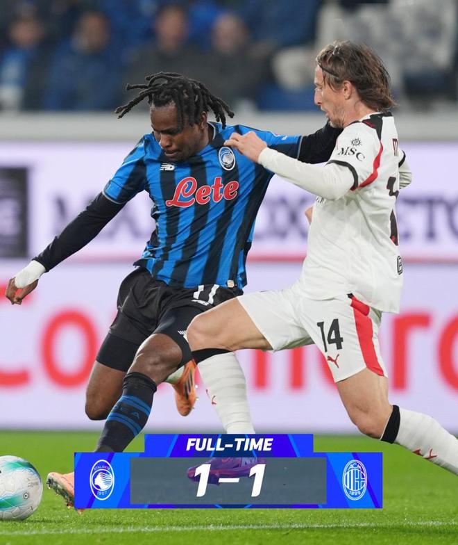 另一场比赛,AC米兰客场挑战状态平平的亚特兰大,开打仅4分钟,米兰就由里奇打入1球,取得了梦幻般开局,第36分钟,卢克曼为主队将比分扳平,随后米兰随占据场上动作,却多次错失再度领先良机,最终只能接受1-1平手,这样一来,与榜首的那不勒斯差距拉大了一个些。