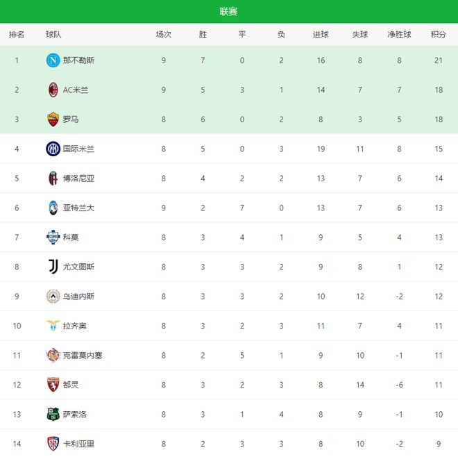 意大利方面,卫冕冠军那不勒斯客场1-0险胜莱切,内雷斯助攻安古伊萨打入全场唯一进球,拿下联赛2连胜,9点7胜2负,拿到21分,排名榜首位置,领先身后的AC米兰和罗马3个积分。